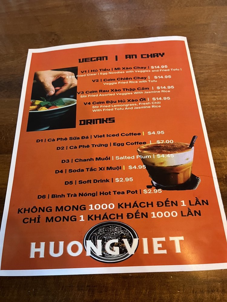 With amenities such as outdoor seating, delivery, and takeout, Huong Viet caters to all dining styles. The friendly staff enhances the experience, offering quick, attentive service in a clean, casual atmosphere. For those seeking authentic Vietnamese cuisine, this restaurant is a treasure trove worth discovering.
